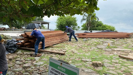 Madeira para construção do deck chega à Fortaleza de Santo Antônio de Ratones. Foto: Jaci Valdemiro Nunes